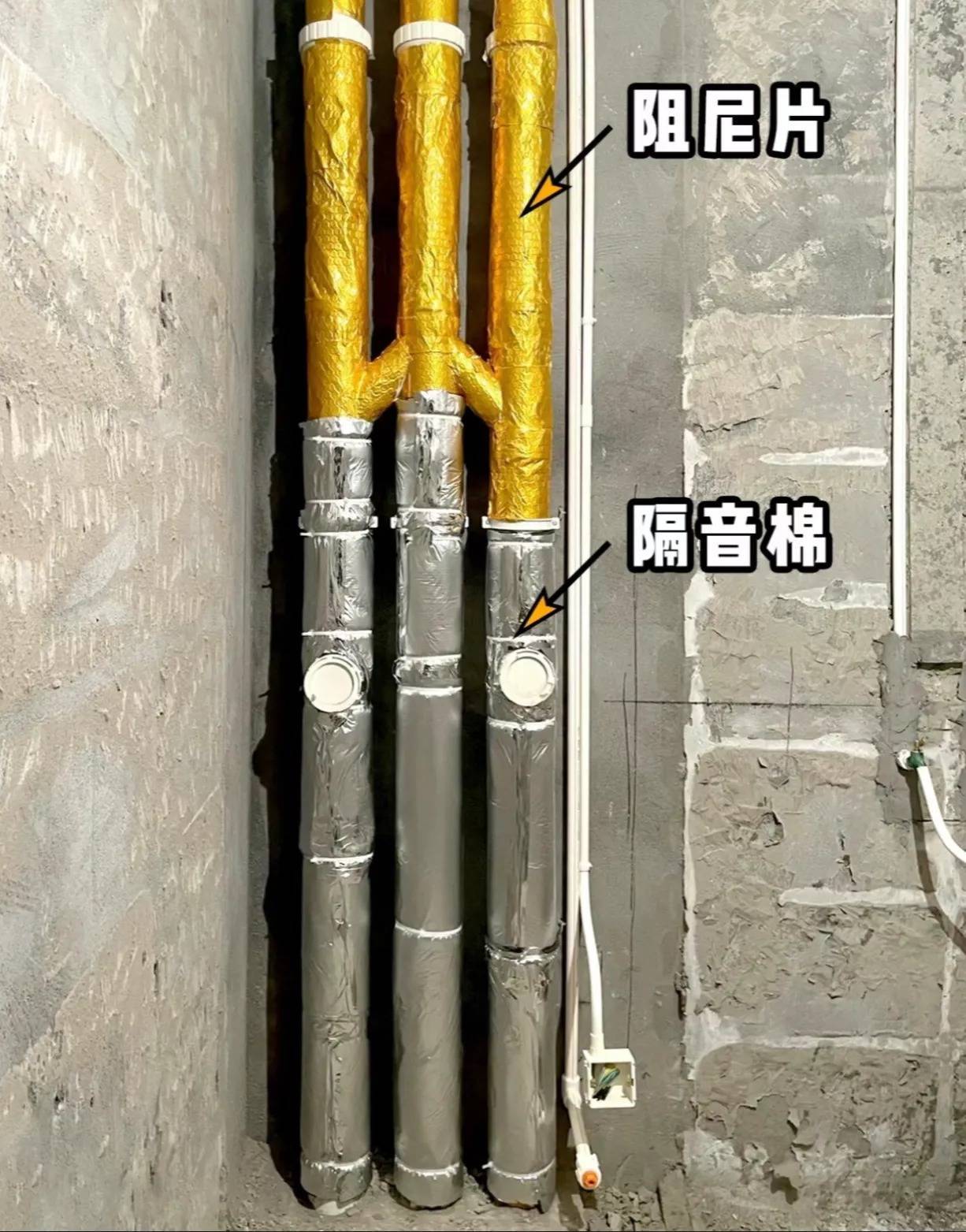 记得一定要把顶上的横管也包住,横管噪音更大,不要只包立管。