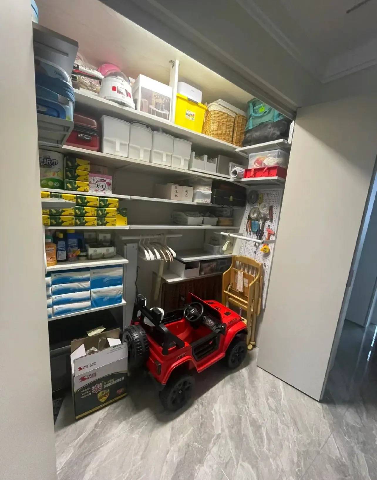入住后,你会发现真的有太多东西,常规的柜子无法收纳,需要放进储物间了。