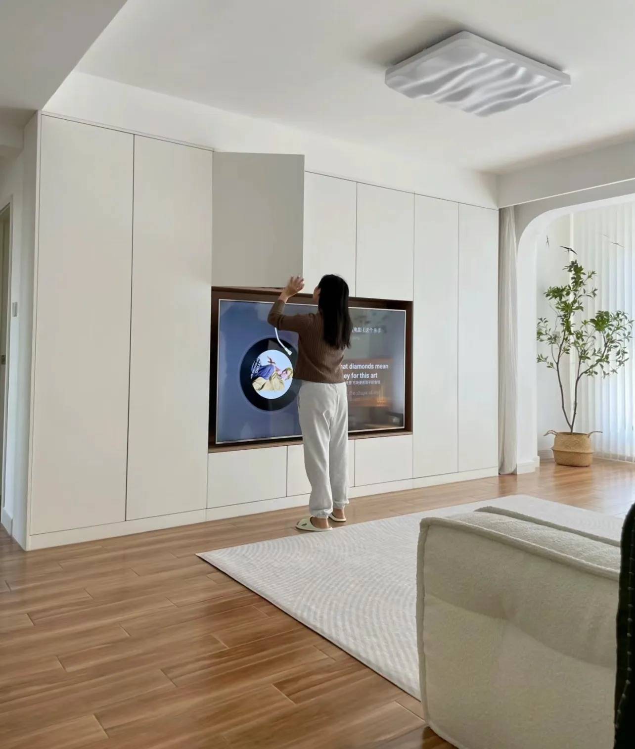 电视墙,可以舍弃去做35cm的满墙电视柜;