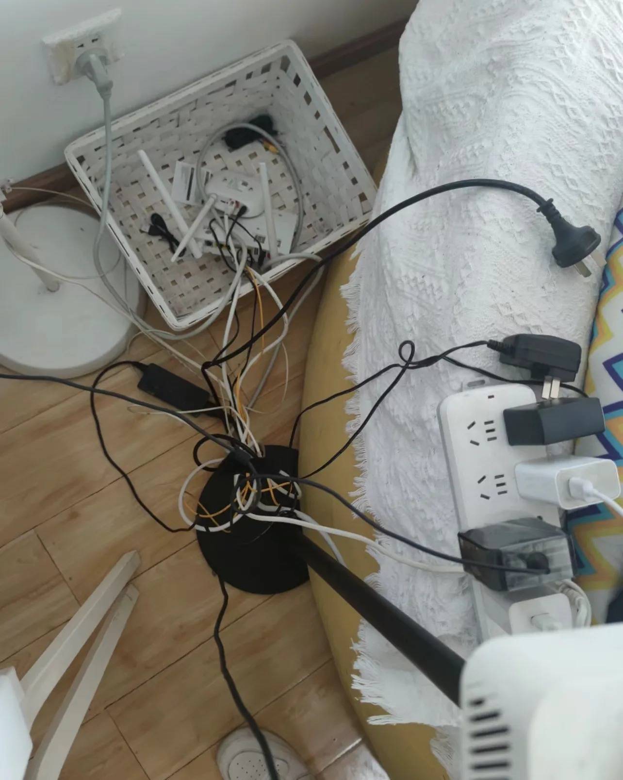有些家庭则是表面干干净净,实则沙发背后,一个插排,插一堆乱七八糟的电线。